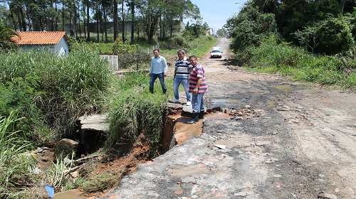 Edemilson e vereadores eleitos Macaia e Alemão verificam enorme cratera que se formou por conta da chuva no Jardim Santa Cruz e pedem providências