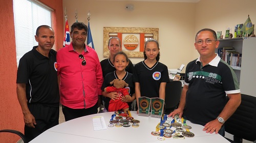 Vereadores Natalino e Eliano recebem na Câmara proprietários da Academia Taekwondo Salto, que mostram as conquistas das filhas em 2016