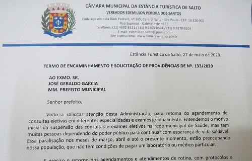 Vereador Edemilson solicita a retomada do agendamento de consultas eletivas