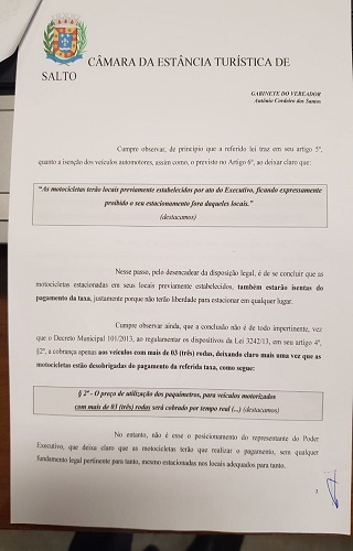 Cordeiro denuncia no Ministério Público de Salto a cobrança da Zona Azul aos motociclistas