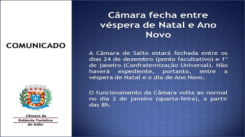 COMUNICADO – Câmara fecha entre véspera de Natal e Ano Novo