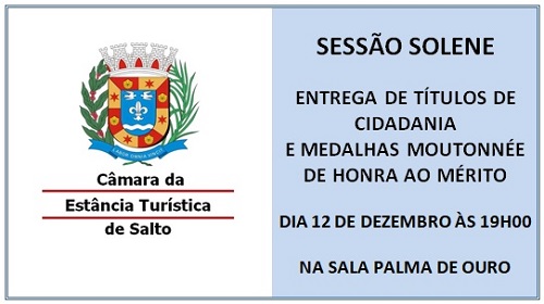 Câmara de Salto realiza cerimônia para entrega de honrarias na Sala Palma de Ouro