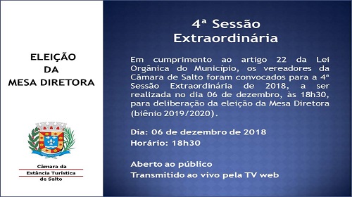 Eleição da Mesa Diretora da Câmara de Salto acontece nesta quinta-feira, dia 06