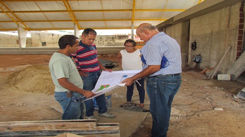 Vereador Garotinho visita obra da quadra poliesportiva do CEMUS X no bairro São Pedro e São Paulo