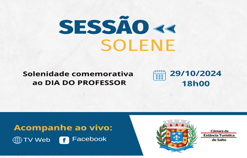 Sessão solene comemorativa ao Dia do Professor será realizada na Câmara de Salto