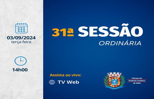 ACONTECE HOJE, ÀS 14H00: 31ª SESSÃO ORDINÁRIA DE 2024