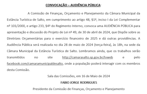 CONVOCAÇÃO – AUDIÊNCIA PÚBLICA