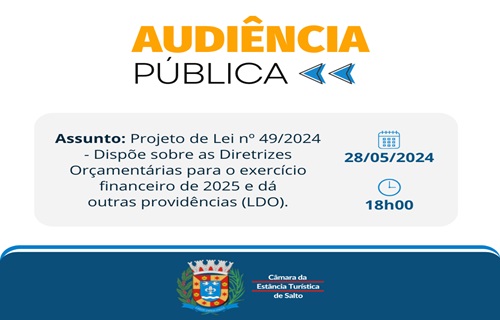 COMUNICADO - Audiência Pública na Câmara debate LDO 2025 na próxima semana