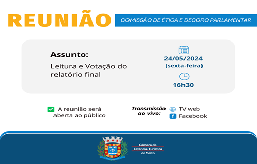 No plenário da Câmara de Salto, Comissão de Ética vai realizar a leitura e votação de relatório final sobre denúncia de importunação sexual