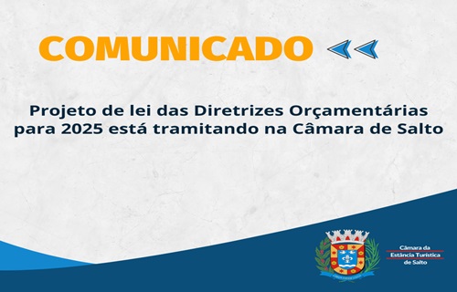 COMUNICADO - Projeto de lei das Diretrizes Orçamentárias para 2025 está tramitando na Câmara de Salto