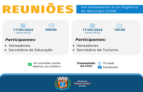 AVISO: Reuniões com secretários municipais (Educação e Turismo)