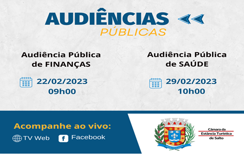 Câmara recebe Audiência Pública de Finanças no dia 22 e Audiência Pública de Saúde no dia 29
