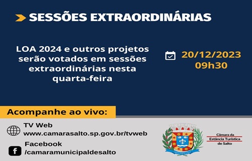 COMUNICADO: Nesta quarta-feira, Câmara de Salto realiza duas sessões extraordinárias para votar LOA 2024 e outros projetos