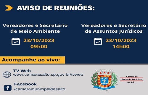 AVISO: Reuniões entre Vereadores e Secretários de Meio Ambiente e de Assuntos Jurídicos