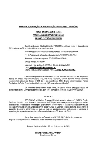 2º TERMO DE AUTORIZAÇÃO DE REPUBLICAÇÃO DE PROCESSO LICITATÓRIO