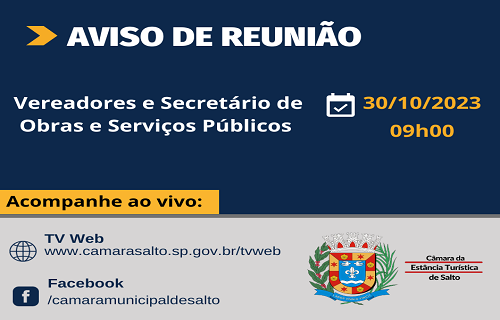 AVISO: Reunião entre Vereadores e Secretário de Obras
