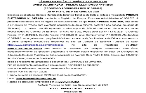 AVISO DE LICITAÇÃO – PREGÃO ELETRÔNICO Nº 04/2023
