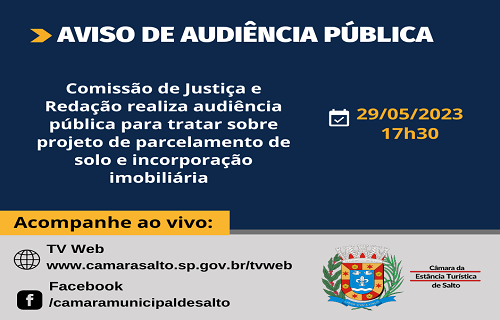 Na Câmara de Salto, audiência pública vai tratar novamente sobre o projeto de parcelamento de solo e incorporação imobiliária