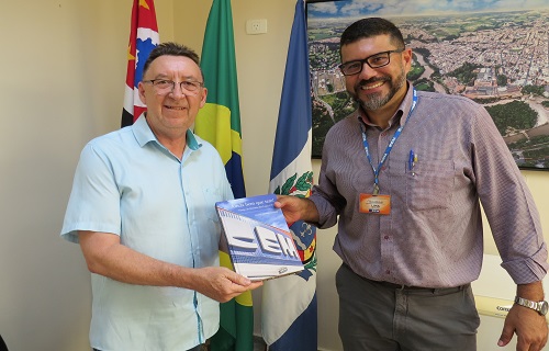 Presidente da Câmara de Salto recebe exemplar do livro comemorativo das Lojas CEM