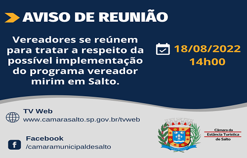 Na próxima semana, vereadores se reúnem para debater sobre o programa vereador mirim em Salto