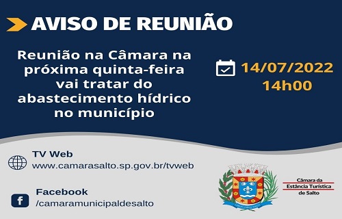 Reunião na Câmara na próxima quinta-feira vai tratar do abastecimento hídrico no município
