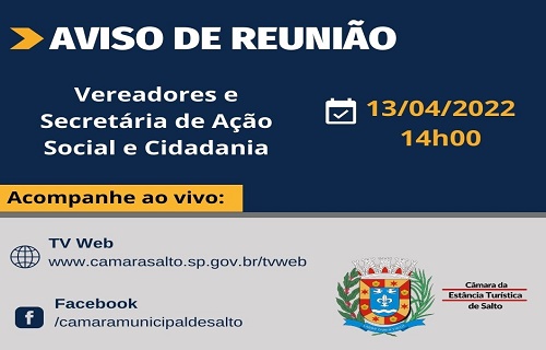 AVISO DE REUNIÃO: Vereadores e Secretária de Ação Social e Cidadania