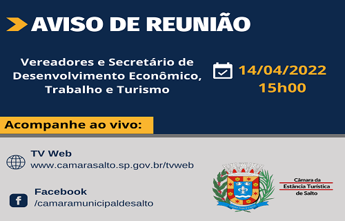 AVISO DE REUNIÃO: Vereadores e Secretário de Desenvolvimento Econômico, Trabalho e Turismo