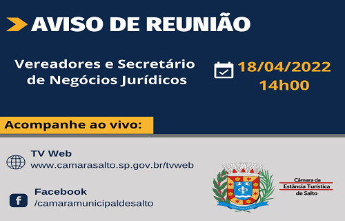 AVISO DE REUNIÃO: Vereadores e Secretário de Negócios Jurídicos