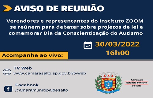 AVISO DE REUNIÃO: Vereadores e representantes do Instituto Zoom se reúnem para debater sobre projetos de lei e comemorar o Dia da Conscientização do Autismo