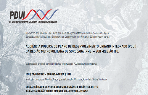 DIVULGAÇÃO - Audiência Pública sobre PLANO DE DESENVOLVIMENTO URBANO INTEGRADO
