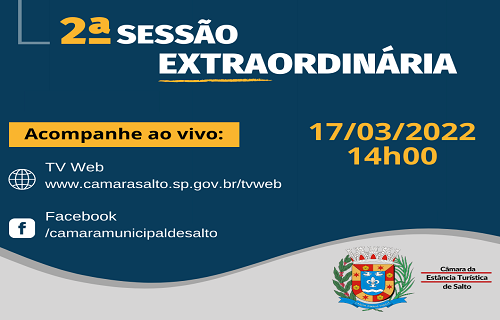 Nesta quinta-feira, a Câmara de Salto vai realizar a 2ª Sessão Extraordinária de 2022