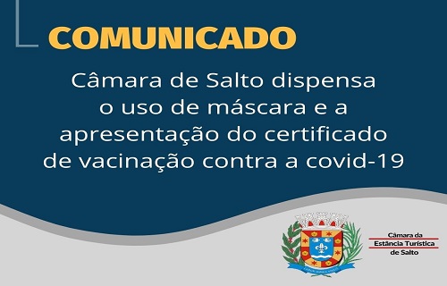 COMUNICADO: Câmara de Salto dispensa o uso de máscara e a apresentação do certificado de vacinação contra a covid-19